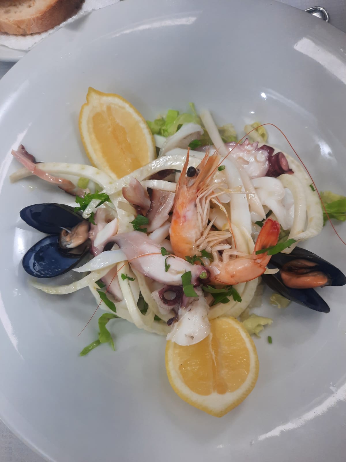 Location deludente, preparazione del cibo scadente, menu assente, personale impreparato e improvvisato. Ora entro nel merito: antipasto misto: piatto di calamari e polpo con finocchio completamente insapore e senza sale, piatto di fritture con bruschette insipide (e fatte veramente male: i pomodori stavano più nel piatto che sul pane), zeppoline e patate già fredde appena arrivate; buona l'idea e il sapore del polipo con i piselli, fagioli e cozze è abbastanza scontato e me l'aspetterei più in un'osteria ma ok. soute di vongole che arriva in realtà con vongole e cozze, cozze non pulite, ma cosa terribile e che mi farebbe dare 0 stelle se fosse possibile, è usare le fette biscottate e il pan carrè per fare i crostini (vedi foto), ma i crostini, quelli veri, si fanno col pane e si fanno friggere per fargli mantenere la croccantezza anche se immersi in un soute, in questo ristorante invece i crostini diventano una pappetta da latte a colazione, inoltre il soute era salatissimo (vi consiglio se avete finito il pane di dire che il soute non lo potete fare!). Diversi piatti che ho nominato erano pieni di peperoncino: fagioli, piselli con polpo, soute, in certe zone quasi immangiabili (il pesce non si cucina col piccante perché copre il sapore che è delicato e lo usano quando il pesce è scadente). Io non ho mai visto un soute col peperoncino dentro. Pane a tavola bruciato, camerieri che chiamano "ragazzi" anche gli ottantenni, piatti tolti mentre ancora si sta mangiando, conto improvvisato su un foglietto di carta qualsiasi. Professionalità zero. Peccato per il pesce perché la qualità della materia prima ci stava, ma in cucina ci vorrebbe un miracolo o Cannavacciuolo per aiutare. Conto salato come se fossero veri professionisti. Non tornerò più e spero di essere d'aiuto ad altri per scegliere dove mangiare...