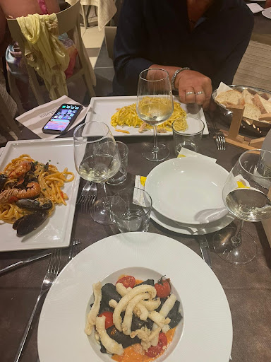 La sera del 15 agosto 2025, su consiglio delle nostre figlie, che erano già state a luglio, abbiamo deciso di provare questo ristorante. Il complimento più grande va fatto a tutto il personale di sala, che ha gestito con professionalità un numero elevato di persone presenti per in sala. Abbiamo cenato nella sala interna, (le mie figlie in quella esterna, forse chiusa per ragioni organizzative). Nel ristorante possono entrare tutte le taglie di cani. Abbiamo preso tre primi: scialiatelli allo scoglio, carbonara di mare, cannelloni di nero di seppia e calamari. Pur avendo aspettato il tempo giusto, le pietanze sono arrivate fredde. Il piatto che più ha deluso è stato lo scialiattello allo scoglio, fatto con sugo gamberoni e cozze. È la prima volta che ho visto una preparazione del genere. Gli ingredienti erano slegati tra di loro, oltre al fatto che le cozze non erano pulite molto bene (erano presenti ancora le striature bianche sul guscio). Il tutto freddi. Nulla da eccepire sulle altre due portate, se non per il fatto che fossero freddi. Le porzioni sono generosi e impiattate bene. Abbiamo preso anche una frittura mista (gamberi, calamari e verdure pastellate). Nulla da dire sulla qualità del pesce, purtroppo la frittura era troppo oleosa e la cottura dei calamari non è stata perfetta (il colore era sul bianco e non dorata). Abbiamo speso 100,50 Euro, oltre alle pietanze descritte, da aggiungere una bottiglia di vino bianco, una bottiglia di acqua, mezza porzione di petto di pollo per il cane e il servizio. Dopo i giudizi delle nostre figlie, avevamo grandi aspettative per questo ristorante, forse è da andarci in occasioni meno affolate. Un ultima nota, questa forse non è da imputare alla parte ristorante. Poiché la struttura ha anche un bar e disco all'aperto ,i bagni li abbiamo trovati in condizioni p...