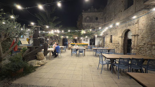 Originale ristorante situato nella marina di Cariati. Si mangia nel cortile di una vecchia chiesa delimitato da antichi caseggiati e coperto parzialmente da una pianta rampicante che cresce lungo fili tirati appositamente. Nel cortile è anche presente un grande fico d'india che crea una bella atmosfera e una barca in legno un po' disastrata che sarebbe da tenere un po' più in ordine. Particolare l'interno (non utilizzato per i tavolini) con soppalchi in legno, scalinate in pietra, foto di famiglia e amici, cassette d I frutta e verdura sparse. Bagni originali con lavandino in pietra vecchia, mattonelle quadrate di vario spessore, lunghi specchi rettangolari. Cibo tutto buono dal variegato antipasto: insalata di polpo con peperoni, sardella salata, frittatina di ricotta, olive arriganate, pomodorini al forno ripieni di sardellina, melanzane gratinate, fegato alla veneziana ( ottimo), pomodorini secchi alla menta. Molto buono il tonno grigliato con pomodorini freschi (viene servito piuttosto crudo, quindi richiedere una maggiore cottura se così non piace). Ottima la frittura di gamberi servita con buonissime patate . Cocomero ghiacciato alla sambuca e amaro. Era ottimo anche il pane! Il ragazzo che ci ha servito è stato veloce, gentile e simpatico. Prezzo corretto così come indicato nel menù (30€). L'atmosfera in generale era tra il rustico e il famigliare. Ci siamo trovati benissimo. Il proprietario molto salottiero ci ha presentato anche...