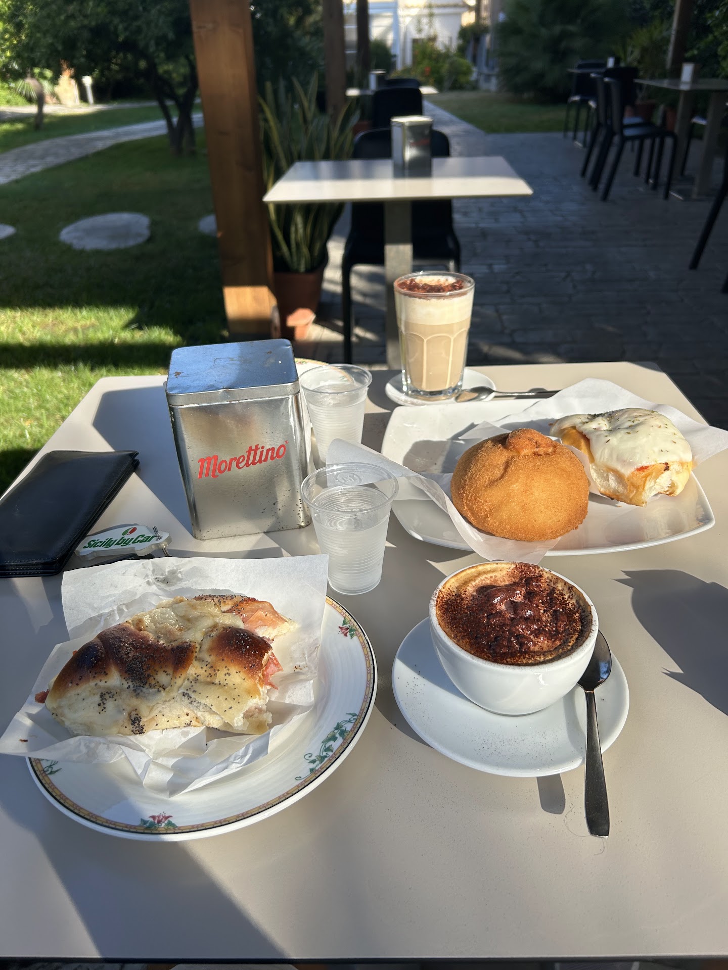 Lovely little gem in Villagrazia di Carini, what a find! All the pastries (and there are SO MANY to choose from that you’ll have to spend a good 10 minutes in order to decide😅) are EXCELLENT, you can tell they are freshly made every day, the smell is so good you’ll never want to leave 😂 coffee is great, they have all kind of milk, vegan or not, croissants, ice creams, cakes….we’ll surely be back!