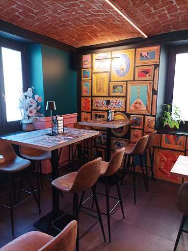 Il locale è molto bello, accogliente e dal bel carattere. L'ambiente è caratterizzato da una buona illuminazione, calda e avvolgente, con particolare risalto alle opere artistiche e stilistiche che tappezzano le pareti. Le poltroncine sono molto comode.