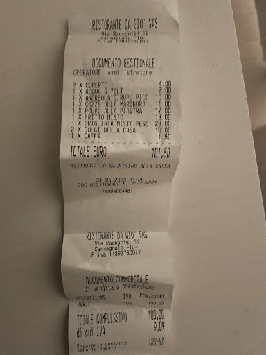 locale. Abbiamo preso 2 antipasti in 5 persone , una cozza alla marinara è un tris di antipasti. I due antipasti sono arrivati a distanza di 15 minuti uno dal altro e quindi mentre alcuno mangiavano altri guardavano e viceversa. Dopo un attesa di 1 ora e 30 sono arrivati i primi piatti e il secondo per mio figlio di 10 anni. Devo dire che gli spaghetti allo scoglio erano ottimi e ben conditi con pesce in abbondanza mentre i paccheri con il pesce erano quasi tutti rotti e il sughetto alla base aveva una polpa acquistata che mi faceva un po’ di acidità ( la stessa che ho riscontrato nelle cozze alla marinara) . La milanese aveva un impostura approssimativa ma nel complesso non era male. Abbiamo preso tre dolci fatti da loro che non erano per nulla male. Il conto? 2 antipasti, 4 primi, una milanese con patatine 2 dolci , 2 litri di acqua e due bottiglie di favorita da 12 euro l’una per la cifra di 143 euro. Che dire ... l’attesa è il servizio hanno lasciato molto a desiderare ... il cibo in compenso era buono anche se migliorabile e il conto...