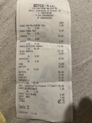 il primo sabato di settembre 2023, ho prenotato per due persone un pernottamento con colazione presso il gustificio. C'è corrispondenza tra ciò che è pubblicizzato ma con qualche omissione: l'ubicazione non è propriamente il massimo, è su una strada di scorrimento principale, un po' trafficata; la camera come finestra ha un abbaino posto in alto, non raggiungibile per poter aprire e arieggiare, ha comunque, un letto comodo ed è perfettamente pulita. All'accoglienza è stato chiesto il saldo istantaneo della camera con colazione e entro le 10 del mattino il tassativo check-out. Queste Informazioni le ha date una addetta , poco sorridente per svolgere la funzione di receptionist. Il ristorante è ben gestito, le materie prime sono di qualità e i camerieri efficienti e simpatici. Una pizza al pesto da dividere in due, come antipasto ( ottima); una fiorentina con osso di quasi 900 grammi complessivi ( buona e giusta cottura); due contorni (ni); due dolci ( piccoli piccoli ma deliziosi), una bottiglia di acqua ,un unico calice di Amarone. Spesa 142 euro. La mattina successiva per liberare la camera all'ora richiesta ( forse un po' presto essendo domenica...) scendiamo a fare colazione alle 8.55 e prendiamo atto di quanto il gustificio sia gettonato. Dopo 10 minuti la prima cameriera che si palesa prende l'ordinazione di due cappucci e due brioches ( in aggiunta propone succhi di frutta che non desideriamo, ma non propone nulla di salato o magari uno yogurth) e sparisce. Restiamo un filo perplessi perché nel sito di booking veniva sottolineata una colazione favolosa. Nel frattempo arrivano altri clienti esterni, si siedono nei tavoli vicini, ordinano e, pur con qualche errore anche con loro, almeno vengono serviti. Passano altri 15 minuti, arriva un'altra cameriera con tre caffè e chiede se sono per noi: " …mmm… no, visto che siamo in due". SI scusa e se ne va alla ricerca dei clienti giusti. Passano ulteriori 15 minuti, torna la prima cameriera e chiede se dobbiamo ordinare: " No, in realtà le avevamo ordinato due cappucci e due brioches che non sono arrivati". Si scusa, dice che allora provvede subito, ma poi non torna. Dopo altri 10 minuti di attesa, ci ritenta, recidiva, la cameriera dei tre caffè di prima, con altri tre caffè e, come fossimo nel giorno della marmotta, ci chiede se li avessimo ordinati noi: no non li abbiamo ordinati noi. E scompare col suo vassoio carico. Tentiamo di attendere per vari minuti ancora ma veniamo ignorati. Ormai era ora (tassativa…) di check out e lasciamo il tavolo, intonso. Al banco della caffetteria mi risento con la giovane signora, che mi pare sia la responsabile, facendole presente che non si possono trattare i clienti in questo modo e che, COME MINIMO, mi aspetto le scuse dalla proprietà e, per lo meno, lo storno delle colazioni non consumate. Lei imbarazzata arrossisce; assicura che provvederà quanto prima a fare il riaccredito, ma nulla accade; a ben 10 giorni di distanza nessun rimborso per l’indebito riscosso. Tra l'altro, in parallelo, una delle cameriere di prima, improvvisamente si sveglia e mentre ormai stiamo salendo a riprendere i bagagli fa il gesto di porgerci , ormai inopportuno e maldestro, due cappuccini e, quasi ci rimprovera, - dicendo che sono i nostri (!!)- perché invece decidiamo di andarcene per non rovinarci ulteriormente la domenica. La mia sintesi è che questo locale, gestito da giovani, ha ancora strada da fare per essere all'altezza dei prezzi che chiede al cliente di pagare. Concludo sottolineando che quando viaggio, per lavoro o per vacanza, non vado al risparmio, e pago volentieri se il servizio reso è corrispondente. Sono stato per anni del mestiere ( hotellerie e ristorazione). Qui, alla fine, ho respirato aria di presunzione da parte di una squadra di lavoro che probabilmente non si è resa conto di essere ancora ai blocchi di partenza... auguro comunque una migliore riuscita futura e un...