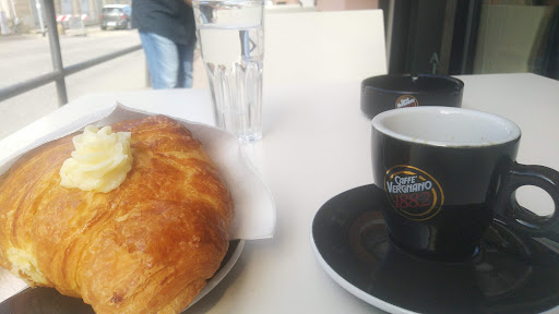 Chi ha letto un altro mio post sa che vado alla ricerca del caffè con la panna, negli anni 90 al bar lo bevevo con mia mamma, adesso molti esercenti dicono che non lo fanno. In questo locale troverete un caffè con panna super! Sono stata da loro venerdì. Il barista ha preso una tazzina un po' alta, ha messo dentro il caffè, peraltro molto buono, forte e corposo, e ha aggiunto la panna riempiendo tutta la tazza, sbordando un po'....10 e lode! Panna buonissima. Il giorno dopo, sabato, sono stata a Milano e in un noto locale ho chiesto sempre il caffè con panna: tazzina piccola, panna scarsa! Non riempiva neanche la tazzina! Quindi cari nostalgici se avete voglia di un caffè con panna Top non andate tanto lontano.... lo avete bello e pronto in via Volta a Carnate! Al barista dico: bravo 10 e lode! ( ho notato anche le brioches....che...
