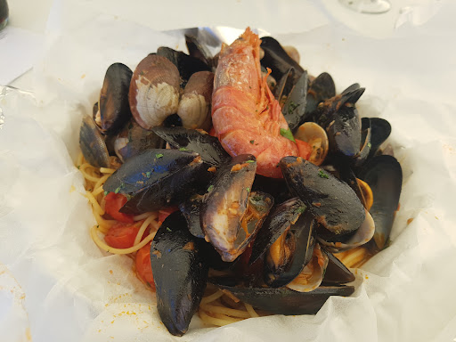 Le mie 4 stelle sono motivate da più fattori risultanti da 2 frequentazioni in 2 giorni consecutivi in questa location vista mare. La prima sera - siamo 4 adulti - abbiamo goduto di un perfetto Happy hour con diversi stuzzichini più che soddisfacenti accompagnati dalla simpatia del titolare...la seconda sera invece abbiamo cenato con 2 primi più che discreti, un antipasto di mare (e qui già era presente una triglia fritta impanata un po' "datata" a nostro avviso) ed una pizza, il tutto seguito da 2 granite, un sorbetto ed un amaro. Al momento del conto (80 € circa) ho osato fare la battuta "l'amaro è offerto,vero?" e la ragazza alla cassa (che non ha mai fatto nemmeno un sorriso in tutta la serata neanche ai tavoli) mi ha guardato malissimo facendo no con la testa. Ora, non pretendo nulla ma al di là di un po' di savoir fair e gentilezza da parte della ragazza, dopo due sere consecutive che siamo tuoi clienti, siamo in ferie e contavamo di tornare ancora, vi perdete per un (non 4) amaro che offrono di default in qualunque ristorante, pizzeria, trattoria a fine pasto? Peccato, cercheremo alternative per i nostri...