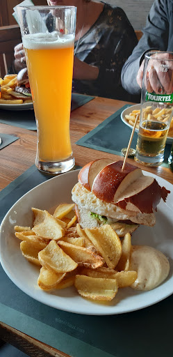 Read moreIl locale è ampio con molti posti a sedere, arredato in stile birreria tedesca. Diciamo che il locale tra alti e bassi non è male. Per quanto riguarda il cibo niente da dire anzi il panino che ho mangiato era ottimo e la salsina di accompagnamento era buonissima. Al contrario a livello del personale e dell'ambiente pecca parecchio. Il personale è praticamente inesistente. Dopo averci fatto sedere in un tavolo appena sparecchiato, senza nemmeno aver passato una spugna per pulire lo sporco lasciato dai clienti precedenti sono spariti. Ci siamo dovuti pulire il tavolo, dopo parecchi minuti di attesa senza vedere nessuno ci siamo dovuti alzare per prendere i menù, dopo altrettanto tempo senza che nessuno venisse al nostro tavolo abbiamo dovuto bloccare una cameriera per prendere l'ordinazione. Insomma per il cibo e la birra si ma per tutto il resto è un no...