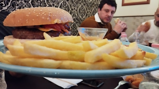 Read moreIl locale si presenta fin dall'ingresso caldo, accogliente e coinvolgente in un clima di puro rock,dai quadri dei grandi artisti al caldo legno dello stile londinese del bancone rende già l'idea di una serata piacevolissima con una compagnia altrettanto gradevole. Il servizio offerto del locale è fin da subito attivo,tempi d'attesa sono davvero ridotti al minimo e il personale è molto disponibile. Il menu offre dei piatti e pizze classiche ed una scelta di birre non vasta ma anch'essa classica,in ogni modo sia la carne che le pizze hanno degli ingredienti di ottima qualità,il ché rende una cena molto gustosa...