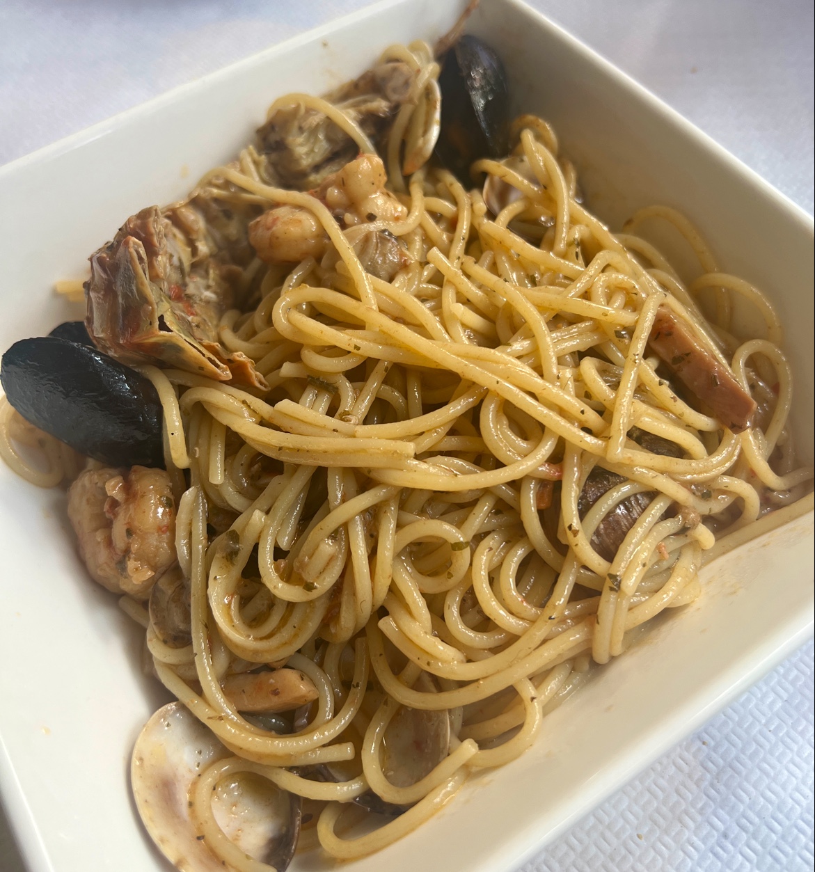 The owner (unfortunately I didnât catch her name) was so nice to us even if we didnât speak Italian. The food was delicious! We ordered spaghetti alla scoglio. The bread was good and the spicy olive oil went so well with it.