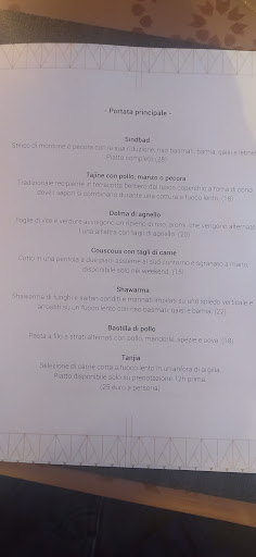 Il menù è una sinfonia di sapori che celebra la ricchezza e la diversità della cucina araba. Ogni piatto è una scoperta, dai meze colorati e aromatici alle portate principali che esplodono di gusto. Il cous cous, morbido e fragrante, è un trionfo di spezie e ingredienti freschissimi.
