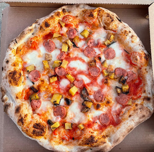 Buona pizza ma personale furbetto! Parto col dire che la pizza è buona per la località e la consiglio. Meno positiva è stata l'impressione che mi ha fatto il proprietario/pizzaiolo. Ordiniamo due pizze da asporto; una Margherita (6€) ed una Wurstel e patatine (7€). Il proprietario/pizzaiolo di sua iniziativa ci dice : "vi va se al posto delle patatine fritte vi metto le patate al forno che faccio io?". Accettiamo interpretando la proposta come un consiglio e soprattutto come una mera sostituzione di ingrediente (precisamente di cottura dell'ingrediente). Paghiamo ed il totale è di 14,50€ quindi con una maggiorazione di 1,50€ (non specificata) per la sostituzione e sottolineo non l'aggiunta dell'ingrediente. Ci guardiamo e pensiamo "vabbè stupidi noi ad esserci fidati ed a non aver chiesto", essendo di fretta decidiamo di pagare senza stare a fare storie dicendoci vabbè se le decanta e le fa pagare 1,50€ ste patate al forno saranno eccezionali. Arrivati a casa apriamo il cartone e la scena è quella della foto. Una manciata di minuscoli cubetti. Praticamente abbiamo pagato in più per una pizza quasi senza patate. Insomma come si sul dire "cornuti e mazziati". Consigliamo la pizza perché resta oggettivamente buona ma attenzione ai consigli del proprietario/pizzaiolo ed occhio al conto! Sarebbe gradita maggiore trasparenza perché il cibo...