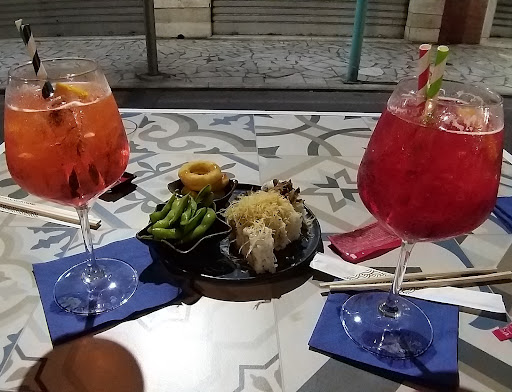 Read moreDELUDENTE AL MASSIMO. Sul cocktail nulla da dire, buono, ma spacciare di fare aperitivo con sushi, mi sembra un po troppo esagerato. Abbiamo preso 2 spritz e ci hanno portato un misero piattino con 3 pezzi contati di sushi a persona, 3 anelli di non so cosa, pur sapendo che siamo due, almeno portane 4 e i fagioli di soia che nemmeno le scimmie le mangiano. Lamentandomi con la cameriera, mi dice che purtroppo portano così poche cose perché il prezzo del cocktail è basso, 8 euro uno spritz me lo chiamate basso? Ma stiamo scherzando? In più la cameriera mi dice che alcuni clienti lo lasciano perché si saziano, 🤔 dubito che si sazino, sicuramente lo lasciano perché non gradiscono. Ci sono bar dove fai aperitivo a 4 euro e mangi senza fine. Non dico che ci devo cenare con il sushi, ma quanto meno ci facevano più bella figura se portavano un piattino a testa. E comunque allego la foto dei cocktail e del piattino striminzito. Lo...