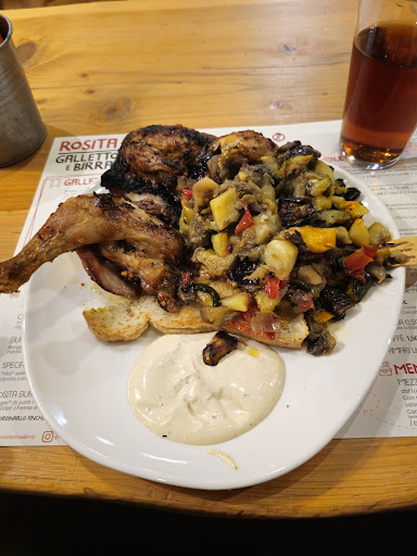 Read moreIl pollo di Rosita ha l’inconveniente di essere ustionante (ovviamente) e, se lo uniamo al fatto che puoi mangiarlo solo con le mani, questo non me lo fa apprezzare appieno. In ogni caso vale la pena di bruciarsi i polpastrelli perché il sapore è ottimo. Rispetto a qualche anno fa l’ho trovato un po’ asciutto e secco. Forse è dovuto al fatto che è un prodotto congelato all’origine. Gli hamburger non sono male ammetto. Quello che ho mangiato io era succoso e veramente gustoso. Le patatine sono le solite patatine surgelate. Le verdure miste sono anche loro congelate e se, come me, non mangi i peperoni o vuoi escludere una verdura non è possibile farlo. La ragazza che ci ha servito poi non sapeva neanche dirmi quali verdure fossero. Capisco che di solito le verdure sono melanzane zucchine e peperoni… almeno non sarebbe male avere una risposta che non sia: boh credo siano le solite verdure quelle surgelate. Onestamente non è un bel servizio. Inoltre era proprio poco simpatica. Abbiamo fatto notare che il tavolo non era pulito e ci ha risposto che lei non può farci nulla visto che ci sono bucce di noccioline ovunque. Se ne è andata senza pulire il tavolo né almeno chiedere scusa. Il tavolo comunque non aveva solo bucce di nocciolina, era proprio unto! Mi dispiace ma il servizio non è stato gran che. Il locale é ampio con tanti posti ma luce molto fievole e molto rumoroso. Faticavo a sentire ciò che diceva la persona seduta accanto a me. Il parcheggio poi é diventato davvero impossibile! Non c’è un buco manco a pagarlo e tutto questo insieme di cose mi fa desistere dal tornare. Peccato perché la birra é buona e comunque il...