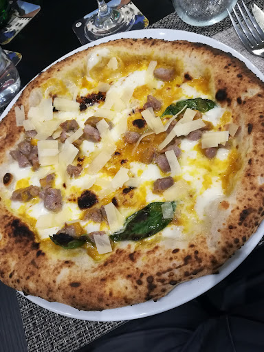 Location davvero super moderna, un parcheggio abbastanza grande. Siccome ci sono andato di sabato ho cercato di prenotare ma, al recapito telefonico del sito, dal venerdì pomeriggio fino al sabato alle 18:00 non ha mai risposto nessuno. Poi alle 18: 15 finalmente siamo riusciti a metterci in lista, una sorta di prenotazione virtuale. In conclusione, abbiamo fatto 1 ora e 40 di attesa. Abbiamo mangiato patatine con fonduta ( sottilette di cheddar sciolte) tiepide. Le pizze , ben 5 su 6 ordinate erano bruciacchiate sul fondo e gommose. Tra l'altro la mia pizza (sorrentina) è arrivata senza fette di limone , ho chiesto di cambiarla, e magicamente dopo un minuto mi hanno servito la stessa pizza con aggiunta delle fette di limone ( hanno preso la pizza con pomodorini e rucola erroneamente servitami, ed hanno aggiunto gamberetti e limone; ma la sorrentina non aveva pomodorini....beccati!). Direi che le potenzialità ci sono tutte, ma il pienone del sabato sera non può giustificare la mancanza di attenzioni al cliente, al quale non si fanno sconti...