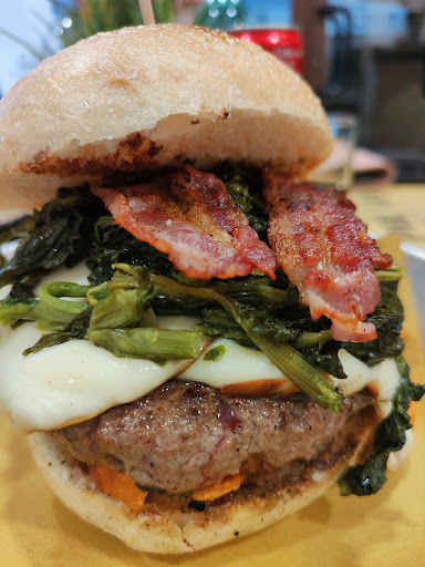 Read moreSorprendente hamburger cilentano. Appena giunti a Casal Velino per un weekend al mare, decidiamo di cenare nel primo posto che capita e la fortuna ci ha assistito. I Ragazzi di Palma non si sono fatti trovare impreparati: sono rimasto molto soddisfatto del mio Peaky Blinders, ma a detta di tutti i commensali il panino era di ottima fattura. Dal pane ai prodotti utilizzati, passando per la carne stessa, era tutto di ottimo sapore e preparato bene. Soltanto il pulled pork, fra gli antipasti, non mi è parso eccezionale: ne ho provati di più succosi e saporiti. Una nota di merito anche per le quantità: la sostanza deve sempre esserci e c'era eccome. Prezzi non proprio modici, ma ne esci più che soddisfatto. Suggerirei l'inserimento di qualche birra in più a menù e di ulteriori starter, attraverso i quali il locale potrà lavorare tanto anche d'asporto per chi non volesse riempirsi troppo...