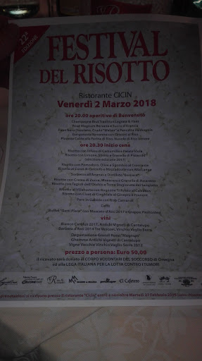 Read moreIm Albergo Ristorante Cicin in Casale Corte Cerro hatten wir ein gemeinsames Abendessen mit unseren Freunden aus Piemonte. Wir sind an einem Freitagabend pünktlich um 20:00 Uhr dort erschienen, sodass das Restaurant knackevoll war. Es empfiehlt sich unbedingt an so einem Abend vorher einen Tisch zu reservieren. Mir kam der Saal recht laut vor, und er bietet keinerlei Sicht nach außen. In diesem Haus wird großer Wert auf Tafelgepflogenheiten gelegt. Es würde uns als Vorspeise vom Haus „merlezzo“ (Kabeljauhäppchen“ angeboten. Wir hatten u.a. Risotto mit Zucchini, Paillard di Vittello alla Milanese, also Schnitzel Milanese. Als Desserts hatten wir Crème caramel sowie Sorbette al limone. Das Ganze hat dann ein Dolcetto aus 2017 gekrönt. Geschmack, Präsentation, Bedienung und Sauberkeit war in Ordnung. Nur die Räumlichkeiten fand ich nicht attraktiv. Preise sind nicht ganz gerechtfertigt und könnten für das Angebot ein Tick günstiger sein. Parkplätze und Garderobe kein Problem. Kurzum: Wir haben...