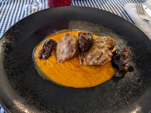 I've been here with my girlfriend for lunch the day after Halloween. We ordered the pumpkin based halloween menù: pumpkin flan, potato cream, bacon as starter, pumpkin risotto with bagna càuda, pork with plums on pumpkin soup as second, Chef Knam dessert cake with dark chocolate, pumpkin and pistachios. We also got beef tartar with bagna càuda, tortellini pasta with 3 different meat, and another dessert: a carrot and hazelnut cake with flambè meringue. Still water and a bottle of Nebbiolo delle Langhe.