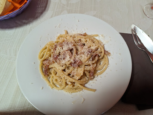 Read moreLocale che ricorda un'osteria romana... caldo e accogliente... due sale dove far cenare e questo è un po' dispersivo per il servizio non sempre presente... Abbiamo preso l'antipasto misto e un carciofo alla romana (fuori menù)... antipasto buono, il carciofo ottimo... Poi tre primi: Linguine cacio e pepe, Cicatiello zucchine gamberi timo e zafferano e i Bucatini alla lupa... ottimi tutti e tre ma i Bucatini erano la fine del mondo... Come dolce Tiramisù al cioccolato bianco, tiramisù classico e torta della nonna... i primi due buoni ma la torta della nonna ha deluso le aspettative... Tornerei anche ora per un piatto di...