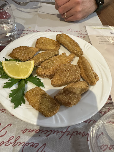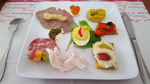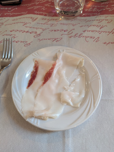 Read moreLocale senza infamia e senza lode che ho trovato dopo tre o quattro tentativi andati a vuoto di prenotare un pranzo festivo presso altre strutture, dopo aver letto recessioni più che positive. Ambiente più che tranquillo, dei proprietari non posso dire nulla in fatto di cordialità e gentilezza. Ristorantino familiare con due salette, di cui una poco luminosa. Leggendo il menù avevo pensato che non ce l'avrei fatta a finire tutto, ma mi sono dovuto presto ricredere, anche se io non sono un gran mangione...La prima foto relativa all"antipasto é eloquente, basti notare una fetta di salame al grignolino, un quadratino di polenta, una fettina di lardo, e voglio fermarmi qui.......Ho dovuto riempirmi lo stomaco di grissini perché continuavo ad aver fame anche dopo aver finito la grigliata mista di carne. Il tutto alla modica cifra di 30 euro escluso bevande. Due menù sarebbero bastati x una persona......Dai cavolo, fate contenti sti...