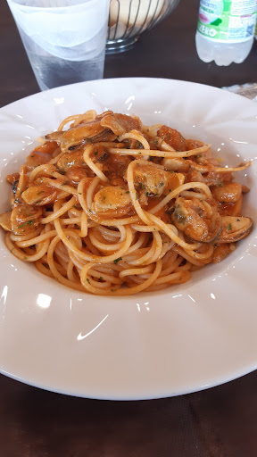 Read morePranzo di lavoro, io e il mio collega abbiamo preso solo il primo, e menomale direi, non che fosse cattivo, anzi, ma la porzione era straordinaria, degna di un pastaio come me, ma il primo del mio collega, uno spaghetto allo scoglio, credo fosse da Guinness dei primati, secondo la mia modesta esperienza di mangione, ci saranno stati almeno 200 grammi di pasta, con un condimento generoso. La qualità del cibo era medio alta, forse un po' troppo olio nel condimento, ma comunque un pasto saporito e abbondante. Come prezzo direi che ci siamo, io con un primo,paccheri con melanzane, mozzarella e pomodorini, e una bottiglia di acqua da mezzo litro ho speso 10,50 euro, lui con lo scoglio e sempre mezzo litro di acqua ha speso 16 euro. Ottimo rapporto...