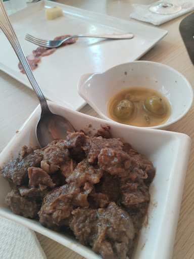 Ci sono stato per la prima volta con un gruppo di amici una domenica di Novembre. Usciti dallo svincolo di Roccalumera, abbiamo percorso credo una ventina di minuti prima di raggiungere il locale situato in un zona isolata con la strada che dire dissestata, è un eufemismo. Infatti la strada non c'è. C'è uno sterrato che ti consiglio di affrontare con molta calma se non vuoi giocarti braccetti e sospensioni. Una volta superato questo piccolo inconveniente, si arriva all'ampio parcheggio del ristorante che troverai alla tua destra. Il locale è grande, ed è formato da quello che ho avuto modo di vedere, da un ampio terrazzo dove pranzare nelle giornate primaverili e estive, è un'unica grande sala al coperto molto semplice e rustica. Attraversando l'ampio terrazzo e prima di arrivare in sala, sulla destra, c'è la zona con i forni (rigorosamente a legna) dove viene cucinata la carne, e dove un gentilissimo signore che lavora lì (o almeno me lo auguro), ci ha accolti offrendoci su un tovagliolo di carta, della buonissima porchetta🐷. Al contrario di quanto fatto dai miei amici che si sono fiondati in sala, io, da persona civilizzata, mi sono recato in bagno a lavarmi le mani ed ho trovato un servizio igienico pulito e munito di tutto. Una volta in sala, sulla sinistra c'è il banco macelleria con esposti i vari tagli di carne e preparati che suppongo si possano acquistare come in una normalissima macelleria. L'arredamento della sala è molto semplice ed è composto da tavoli e sedie di plastica in stile pizzeria in riva al mare per capirci. Una volta accomodati, nel giro di qualche minuto è arrivata la cameriera di sala che ci ha proposto due menù : menù fisso e menù a scelta. Abbiamo scelto il primo menù e dopo altri 5 minuti (la sala era piena) sono arrivati gli antipasti di affettati, la porchetta e poi i primi, due tipi di pasta diversi in un unico piatto (soluzione che non mi è piaciuta). A questo punto abbiamo fatto una pausa e siamo usciti fuori a camminare un po' e sinceramente non c'era granché da vedere, c'era una piscina che per ovvi motivi di ipotermia era chiusa ed inavvicinabile ma che credo sia attiva in Estate. Ad aspettarci al nostro rientro in sala, oltre all'amico che già stava mangiando senza aspettare nessuno, c'era un vassoio di ottima carne mista con contorno di patatine. Menzione a parte merita il vino...un vino rosso buono e non troppo pesante, non è di quelli che dopo un litro ti fa perdere dignità davanti alla società, certo, se lo bevi senza vergogna alla fine ti punisce, ma se non esageri lo gusterai al meglio. CONCLUSIONI: Location: Locale in zona fuori mano immerso nel verde, ma con una strada che strada non è. Il clima che si respira all'interno è quello di un ambiente familiare. Il prezzo: Tendendo in considerazione il rapporto tra quantità/qualità del cibo e la quantità (o meglio i litri) di vino ordinati lo ritengo onesto, abbiamo pagato circa 30 euro a persona contro i 25 euro che un amico dell'amico aveva pagato “...l'altra volta...” ma abbiamo consumato l'ira del signore. Il Personale: ci ha accolti col sorriso ed oltre ad essere molto socievole, ha sempre cercato di soddisfare ogni nostra richiesta velocemente e professionalmente nonostante come detto, la sala fosse piena. Ritengo questo ristorante nelle media e se dovessi dargli un voto gli darei un 7, naturalmente il mio voto e soggettivo e si riferisce alla SOLA mia esperienza PERSONALE. Consiglio di provarlo a chi non ci fosse...