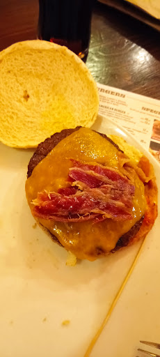 Read moreEntriamo nel locale e veniamo fatti accomodare dopo 5 minuti (cosa che accetterei se ci fosse stato il pieno di persone, invece era pieno per il 30%), scegliamo i nostri piatti ed attendiamo che qualcuno venga a prendere le ordinazioni, 10 minuti ed arrivano, io prendo ciò che si rivelerà un ottimo panino (BBQ) e la mia ragazza chiede un altra pietanza che, dopo poco ci verrà detto non essere disponibile, dopodiché la mia ragazza sceglie delle semplici verdure grigliate e, dopo altri 5 minuti ci viene detto che "nemmeno quelle ci sono..." infine quasi per disperazione ha preso delle semplici patatine fritte. Il mio piatto arriva dopo 15 minuti (molto rapidi per essere un fast food) ed come suddetto, squisito. Dopo 35 minuti che il mio piatto era arrivato e dopo che noi avevamo sollecitato il cameriere a servizio, arrivano le famose SEMPLICI patatine. Mettendo da parte questo servizio (che sarebbe stato tollerabile a ristorante pieno in orario di punta ma non con il 30% di coperti attivi nel locale alle 22:00 di domenica) volevamo gustarci uno dei soufflé del ristorante, OVVIAMENTE dopo 10 minuti che lo avevamo ordinato ci viene detto che il topping che volevamo non era disponibile.... beh, a quest'ulteriore rifiuto ci siamo alzati e ce ne siamo andati. Mi guarderò molto bene dall'essere nuovamente disponibile per...