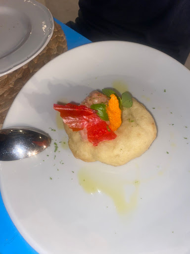 Read moreSono stato a pranzo in questo luogo con un gruppo di amici e ho potuto apprezzare la location, sicuramente suggestiva, ma ho trovato non poche imperfezioni che mi inducono a lasciare solo due stelle. Al nostro arrivo, nonostante la prenotazione, il tavolo non era pronto e, al momento della puntualizzazione a riguardo, erano sorpresi più loro di noi. Tralasciando ciò, abbiamo poi bevuto un cocktail al basilico che, per carità, era buonissimo ma se lo avessi fatto io a casa mia avrei fatto meglio: 48€ l'uno per tre persone, ringraziando l'altissimo che la quarta aveva deciso di non prenderlo. Un po' di basilico secco e acqua leggermente saporita hanno già fatto cadere le aspettative. Successivamente abbiamo ordinato per ciascuno un primo e un secondo, eccetto il quarto che ha deciso di prendere un solo piatto di verdure. Per quanto mi riguarda, 4 ravioli ripieni a 35€ e un calamaro scarno con un po' di foglie verdi a prezzo altrettanto alto, è follia pura. Dal mio pescivendolo un calamaro lo pago 3€! Uno del gruppo ha poi deciso di ordinare del vino, l'unico disponibile, che già pecca molto, ovvero la falanghina. Il cameriere ci ha parlato di calice ma nel suo bicchiere c'era forse una goccia, altrettanto saporitamente pagata. Il colmo è giunto sul pesce nel sale che non si è neanche capito se fosse stato servito intero o solo in parte. Comunque sia, anche questo, l'avrei risparmiato, essendo una semplice orata un po' bagnata a 56€. Il servizio, oltre che lento e inadeguato, era caratterizzato anche da elementi tutt'altro che seri e competenti del ruolo, tant'è che il cameriere, al momento dello sparecchio, a ben pensato di lanciare il pane rimasto nel mare che, per carità, è normalissimo, ma sicuramente è poco adeguato al decoro. Alla fine 300€ di pranzo per quattro, di cui tre hanno ordinato un primo e un secondo e l'altro ha ordinato un piatto di verdure, per poi fare scale altrettanto scomode. Insomma, abbiamo pagato e siamo rimasti per educazione ma di sicuro la furbizia non paga. Saremo altrettanto furbi non...