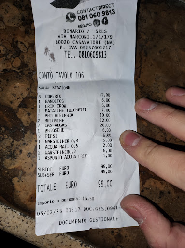 Read moreCucine da incubo!!! Siamo arrivati in questo locale di Sabato sera alle 23(con prenotazione). Abbiamo scelto di provare questa attività proprio per il suo tema particolare e ci aspettavamo di accomodarci all'interno del vagone ferroviario, tuttavia siamo stati sbarcati all'esterno. La parte esterna del locale è un gazebo mezzo aperto con accessi di vento da ogni lato; le due stufe a gas sono palesemente insufficienti visto che abbiamo dovuto metterci i cappotti sulle gambe. I tavoli erano distanti dai divanetti e per appoggiarsi al tavolo bisognava allungarsi. Ma questo è solo l'inizio di una serata di memorabile degrado. Prima di poter ordinare passano la bellezza di 30 minuti e la cameriera arriva solo dopo che è stata sollecitata due volte a venire al tavolo. Ordiniamo l'antipasto, i panini e le bibite e ci avvisano già che non avevano la fonduta di formaggio. Le bibite arrivano a temperatura ambiente, la pepsi che ci viene portata è chiaramente allungata con acqua e una bottiglia di acqua che mancava abbiamo dovuto chiederla più volte. Dopo 40 minuti forse dall'ordinazione arriva l'antipasto. Ci vengono servite una manciata di forchette su un malloppo di fazzolettini e lasciato a noi il compito di disporre la tavola. Le patate fritte erano crude e di pessima qualità, i CrikCrok crudi e sapevano di antico. Da qui il nulla per più di un'ora. Gruppi di persone lasciavano il loro tavolo per l'attesa troppo prolungata. Dopo esserci spostati all'interno per il troppo freddo, alle ore 01 finalmente arrivano i nostri panini. Il pane presentava uno strato di olio che al tatto bagnava completamente le mani, all'interno era praticamente vuoto e abbiamo subito: patate al forno crude, melanzane dorate e fritte senza un minimo di doratura, carne cruda quando richiesta ben cotta. Per concludere in bellezza ci viene presentato il conto. Abbiamo pagato: 6€ per 4 banditos, 6€ per 4 CrikCrok, 7€ per una porzione di patatine con polpettine più piccola di un cestino di pane. 2€ a persona per il coperto, dove non ci è stato garantito né un posto caldo, né una tavola ben assortita. Un panino semivuoto ci è stato fatto pagare 10€. In tutto questo caos non si è vista l'ombra di un titolare che gestisse la situazione, i ragazzi che vi lavorano sono stati lasciati nella confusione più totale. Esperienza che non...