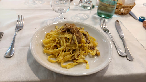 Locale con location carina e ad un passo dal Monastero, quindi posizione ad hoc! Premetto che ci sono venuta non so più quante volte ma peccato adesso non mettere 0 stelle. Siamo arrivati con prenotazione di 9 persone all'orario stabilito nessuno ci ha filato, personale e proprietario scortesi da morire, inoltre telefonando con molti giorni di anticipo abbiamo chiesto se avessero anche cose per celiaci ma arrivati al momento della comanda non avevano nulla di riferimento al cibo per celiaci ed inoltre non sanno la differenza tra allergia al lattosio e celiachia. Inoltre organizzati malissimo e servizio lento. Pessima organizzazione del cuoco. Al momento della comanda il proprietario trattato malissimo e ha detto che dovevamo aspettare i primi perché eravamo troppe persone. Ci hanno portato il pane ma nessuno per 30 minuti ci ha filato per avere l'acqua con un caldo asfissiante. L'antipasto buono ma classico senza nulla di particolare del luogo e in 1 ora dalla comanda solo quello. I ravioli nulla di che anche se mangiabili, pappardelle fatte a mano buone ma il cinghiale troppo dolce e i porcini non erano freschi. Dopo i primi la carne è arrivata dopo 40 minuti e come grigliata mista non era nulla di che e la carne passabile, le patate al forno troppo asciutte. Nel complesso molto mediocre e mi dispiace ci sono tornata perché non ci aveva mai deluso, mi dispiace ma non tornerò mai...