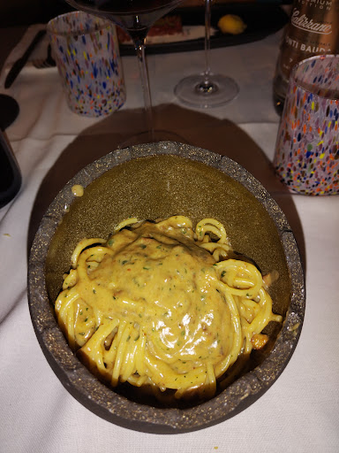 Disclaimer: We are restaurant snobs who live in one of the gastronomy capitals of France. We stopped here on our way to Pisa for lunch and we had such a great time! The food was fresh and prepared in a modern, gastronomy style, without being pretentious. I had the seabass and it was cooked to perfection. My partner had the slow cooked octopus and my father had the smoked salmon. Everyone was thrilled with their meals. The wine was lovely, and the owner is super professional yet chill. He was very accommodating of our non-existant Italian. My understanding is that he and his wife are retired architects who have opened this restaurant as a passion project. The spot is gorgeous, with exposed brick, vaulted ceilings, and a skylight that bathes the restaurant in ambiant light. The jazzy Pink Floyd album playing in the background made it a unique and gorgeous experience. Do stop in if you're looking for something near Pisa, away from all the touristy...