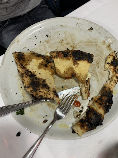 Location and forniture is weird: they didn't find their own style. This place is in the middle between a Traditional Pizza place of Naples and the canteen of a starship. The Pizza is not bad and not excellent: the external part was good, soft and tasty as the tradition of south Italy, the center was thin and hard to chew, really different from Naples pizza.. Service doesn't look really professional (and this could not be necessary bad if they would change style). Even if there was such a big sign, the entrance is not really visible. Finally, many things to improve, but not the worst place I tried in this area. Price is on the average for this kind of restaurant. I would like to give 2.5 stars if would...