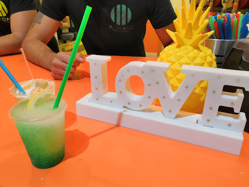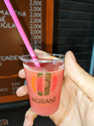 5 stelle meritatissime. Le granite a frutta hanno il costo di 1€ l'una che, personalmente, meriterebbe di piú considerando il fatto che la granita di Agraní non ha il semplice sapore di un classico succo a gusto, ma hanno il sapore stesso e identico di vero frutto a scelta. Infatti, come notare in foto, la granita a destra presenta addirittura pezzi di melone in superficie ed è talmente tanto genuino che, ho trovato un seme del melone all'interno della granita. Per quanto riguarda le granite dolci, sono sempre stata un po' titubante ma adesso, dopo la prima (quella a sinistra della foto, gusto pan di stelle), posso dire che sia la granita migliore che abbia mai mangiato in vita mia. E per granita migliore non intendo solo quella dolce ma anche quella a frutta merita. Il costo delle granite dolci sono 2€...