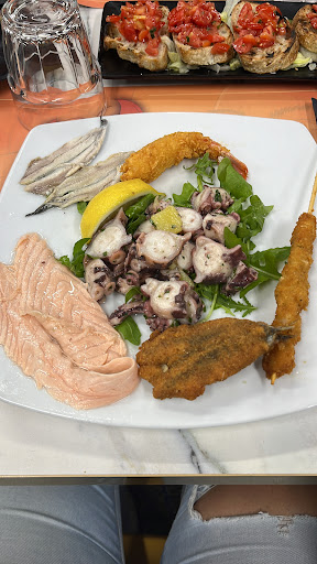 Read moreAppena parchegiato la macchina, c'era un parcheggiatore abbusivo che ci ha chiesto 3€ per la sosta, che poi tra l'altro si è saputo che è il suocero del proprietario, quindi in primis si parla di accatonaggio 😅. Una volta dentro ordiniamo il menù fisso (prezzo 35€ a persona). Dopo 20 minuti ci portano gli "antipasti" si crea un po di movida in sala, si balla e si scherza, ed è solo per questo che non gli metto 1 stella. Una volta finiti gli antipasti, ci portano il "primo piatto" di mare che abbiamo dovuto aspettare 2 ore e 30 minuti e il "secondo piatto" di mare arriva dopo 1 ora che abbiamo finito il primo. Chiediamo il conto e andiamo via. Per chi tifa la juve state alla larga perchè sarete subito presi in giro dal proprietario. Sconsigliatissimo. Non ci...
