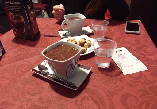 Read moreNon è che io abbia potuto sperimentare al meglio questo bar, dato che mi ci sono solo seduto solo 10 minuti con la mia ragazza, e solo per una cioccolata calda (esausti dopo la camminata del parco della reggia, lì a due passi). Tuttavia qualche considerazione la posso fare. Locale carino, curato, con bagno pulitissimo, personale abbastanza concentrato e dedito, e prezzi piuttosto interessanti. Dalle mie parti, solo per il fatto di essersi seduti in un locale così vicino ad un luogo di interesse della città, il conto avrebbe avuto una maggiorazione di € 1.50 a persona. Qui invece abbiamo solo pagato ciò che abbiamo ordinato, ovvero due cioccolate calde, buonissime, di due gusti diversi (difatti come ovvia conseguenza una era più densa e l'altra invece più liquida, cosa che incontrava perfettamente le nostre rispettive preferenze) che sono state accompagnate da ben 6 biscotti, che abbiamo piacevolmente potuto tuffare all'interno della cioccolata. Concludendo, bar più che soddisfacente. Se in futuro ci ritornerò, proverò altro e magari metterò anche la quinta stella (per questa volta non me la sono sentita perché non ho abbastanza elementi per sbottonarmi...