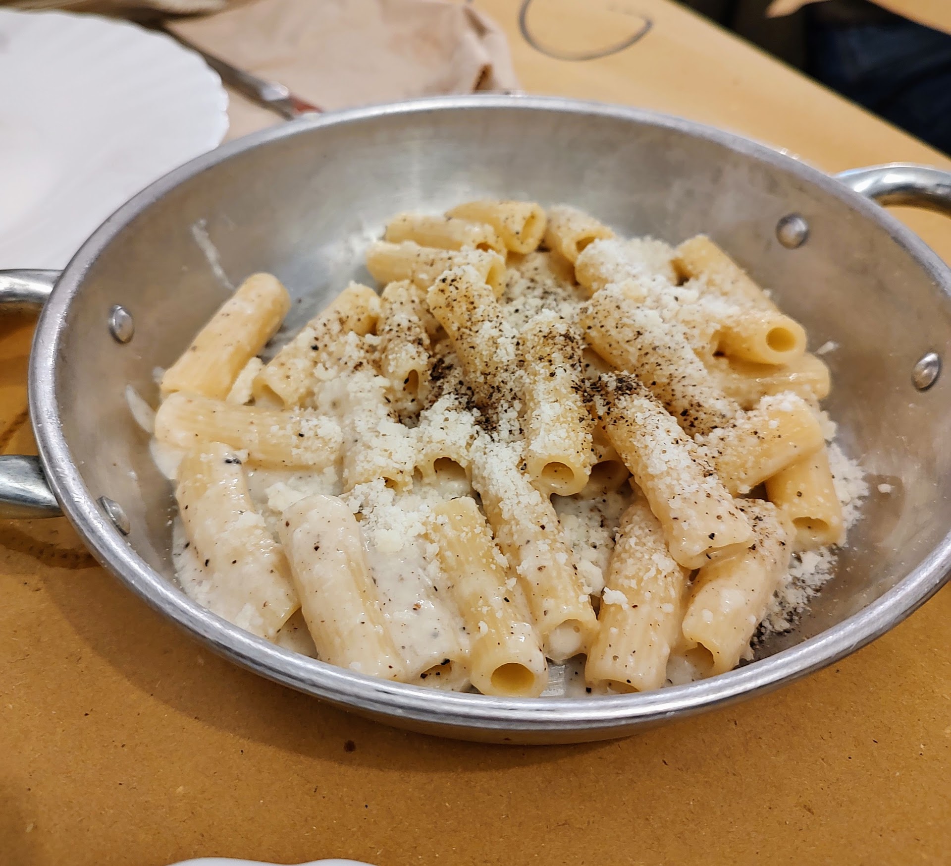 Read moreAvevo provato il locale a Roma e mi era piaciuto, sia come ambiente che come piatti consumati. Con la convinzione di trovare analoga situazione ho portato alcuni colleghi ma le cose sono state un po diverse. La sensazione di essere meno liberi di quanto un All You Can Eat (perché di fatto questo è) prometta, l'ho percepita sin da subito, in quanto non ci sono stati dati i menù dove scegliere ma, a richiesta, ci hanno detto di attendere che qualcuno sarebbe venuto a farci una proposta. Quindi, "guidati" - per me anche troppo - abbiamo ordinato un po di primi, serviti in padelle. Le quantità erano buone, non risicate insomma ma il sapore e la qualità non delle migliori. Ordinate carbonara, cacio e pepe e per finire amatriciana. Sulla prima, discreta, potrei solo eccepire sulla pancetta (non credo fosse guanciale) molto sottile e secca. Sull'amatriciana, purtroppo, devo dire che assomigliava più ad una pasta al sugo di pomodoro con pezzetti di pancetta (molto secca anche qui). Il sugo sapeva di bruciato (per carità può capitare), peccato che lo stesso sugo fosse quello usato sulla polenta, facente parte di un antipasto misto che aveva preceduto i primi. Anche lo stesso sapore di "bruciato" lo accompagnava. Abbiamo preso un po di vino rosso "dei colli" come ci è stato presentato e, pur considerando il fatto che fosse in caraffa, l'ho trovato davvero difficile da bere; ritengo che non debba per forza ridursi così in basso la qualità solo perché il vino non provenga da bottiglie da carta dei vini . Il servizio è stato così così. A parte quanto già detto in relazione agli ordini, presi da una persona sola tra quelle che via via sono venute al tavolo, il momento in cui, con la chitarra, si è cercato di emulare i cantastorie romani non mi è piaciuto. Una sorpresa rispetto al locale romano già visitato e quindi, siccome non lo sapevo e vorrei un po di tranquillità a tavola, non l'ho apprezzato. Al di là del contenuto delle canzoni che forzosamente cercavano di coinvolgere i commensali, che per me ha peggiorato ancora la esperienza. Qualche complicazione, seppur risolta, poi alla cassa dove, avendo necessità di suddividere il conto in più pagamenti era evidente il fastidio che questa richiesta aveva portato nell'operatore. Prima che qualcuno dica: cosa ti aspettavi da un All You Can Eat?, vorrei precisare che non è stato il prezzo a farmi entrare ma un'esperienza in libertà fatta in un locale analogo - con lo stesso nome - in altra città e che tutto sarebbe potuto andare molto meglio se solo ci fosse stata maggiore attenzione su cose piccole ma fondamentali. Auguro ai gestori buon lavoro ma di trarre qualche spunto di miglioramento rispetto a quanto...