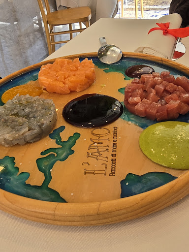 Read moreQuesta è stata la mia prima esperienza presso L'Amo e prima dire qualsiasi altra cosa confermo, come da voci e recensioni, essere il miglior ristorante di pesce di Caserta e sicuramente uno dei migliori in Campania. Non sono solito frequentare ristoranti di pesce ultimamente perchè ritengo che sia ormai molto difficile trovarne di validi e soprattutto che offrano una qualità degna della spesa. Il pesce è una di quelle materie prime per me che se non è alla massima freschezza e qualità ritengo non valga neanche la pena di essere consumata visto anche i rischi che si corrono e ultimamente nella ristorazione da questo punto di vista si pecca spesso di qualità. Non è ovviamente il caso de L'Amo che, come dai pareri che avevo letto e sentito, offre una qualità del pesce impareggiabile e senza precedenti. Eravamo io e mia madre e abbiamo ordinato tre piatti in tutto prediligendo la proteina e quindi il pesce prima di tutto, essendo io in regime ipocalorico, ordinando così il Trio del Blu come antipasto che consisteva in questo trittico di tartare di Salmone, Gambero Blu e Tonno che per quanto mi riguarda sono state il primo trigger per farmi capire la qualità del pesce e il target del locale. Mia madre ha invece preso la frittura che può variare in base alla disponibilità e neanche a dirvi che la frittura era leggera, asciutta, croccante e cotta alla perfezione che non è per nulla scontato. Come ultimo piatto ho preso il Fuoco di Mare ovvero la grigliata di pesce che può variare sempre in base alla disponibilità e purtroppo è l'unica che non posso mostrarvi perchè l'ho divorata senza pensare di perdere il tempo per fare delle foto. La grigliata era composta da tonno grigliato in stile tataki, polpo, seppia, calamaro e gamberoni tutto a dir poco perfetto per cottura e ovviamente freschezza. In conclusione dovremo tornare per assaggiare il resto del menù che penso sia da non perdere. Il locale inoltre è elegante ma al contempo conviviale e familiare, ci si sente a casa e il personale è estremamente attento e gentile. L'amo in ogni caso punta tutto sulla qualità del pesce e ne fa il suo punto di forza con estrema consapevolezza quindi non dico altro perchè le chiacchere stanno a zero quindi il mio consiglio è tacito. Concludo con forse la parte che tutti attendono ovvero il prezzo, prezzo in linea e vista l'eccellente qualità azzerderei che il rapporto qualità/prezzo è pressochè imbattibile. Provate e poi mi...