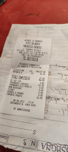 Read moreSerata esplorativa. Una serata tranquilla trascorsa tra le stradine del centro storico di Caserta, contornata da un clima abbastanza mite per il periodo, ha stimolato un certo appetito. Con me la compagnia adatta, già rodata in alcune trasferte anche fuori regione. Sbircio sul Maps, voglia di qualcosa di buono, lontano dalla caoticità della città Vanvitelliana, sbuca il nome di Michele Ferrante e la sua risto-salumeria. Mi intriga 😁 Arriviamo quasi a San Leucio, il locale si presenta di modeste dimensioni, non ha un presentazione mastodontica come quelle viste poco prima nel centro di Caserta. Mi fido dell'istinto quando, sbirciando, ho iniziato a vedere un ambiente "caldo e familiare" ed il prosciutto esposto, appeso alla trave in legno che sovrasta il banco espositivo, fa breccia nel mio ❤️ 😁 Entriamo, veniamo accolti dal gentile Antonio, ci fanno accomodare subito. Sfoglio il menù e la mia attenzione ricade subito su l'hamburgher di bufalo 🐃 (mai assaggiato) e il formaggio sott'olio (pecorino del Matese) ai quali faccio abbinare dei pomodori secchi. Risultato: strabiliante!! 🤩 Ottimo anche il panino di marchigiana scelto da mia moglie ed i taglieri dei miei commensali. Buona la carta dei vini, ho avuto modo di sbirciarla, riconoscendo alcune cantine che ho già assaggiato, anche se ho optato per una birra l'accompagnamento della mia cena (lo so, quel bufalo andava onorato con un buon rosso, ma avevo voglia di 🍺 😁). Un plauso a Michele ed il suo staff per averci coccolato e soddisfatto le nostre...