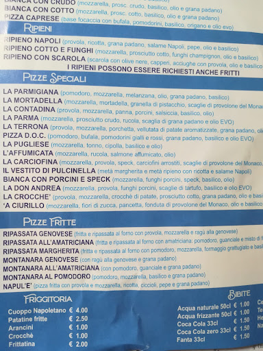 Read morePrendiamo spesso la pizza presso questa pizzeria poiché la riteniamo buona e molto leggera, ma quando abbiamo deciso di variare dalla solita margherita, optando per "il vestito di pulcinella", siamo rimasti delusi. Come si vede in foto, la pizza è per circa i 4/5, se non di più, una normalissima margherita, quando, stando a quanto scritto sul menù (e pertanto ho allegato la foto anche di esso), il disco dovrebbe essere composto da metà margherita e metà ripieno. Ora, il ricevere una margherita con due fette di salame (e la ricotta era quasi assente) contenute in una porzione di cornicione, al posto del "vestito di pulcinella", non corrisponde a ciò che si dovrebbe ricevere stando alla voce del menù, è tutt'altro. In conclusione, non si tratta neppure di una questione economica, bensì di una...