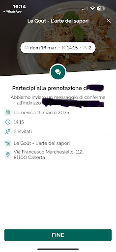 Read moreFaccio questa recensione per risponderla per bene a come ha risposto all’altra precedente ! IO HO MANGIATO DA LEI È HO MANGIATO DAVVERO MALE ! Questa è la mia prenotazione questa sono le altre risposte e questo è il cibo che abbiamo mangiato nel suo locale !!!! DAL MANÙ CI SONO ECCOME I GAMBERI SALE E PEPE ed erano immangiabili come tutto il resto della roba di pesce ! E si HO SPAZIATO dalla carne al pesce ed ho trovato disgustoso il pesce !!!! IMMANGIABILE - VECCHIO CONGELATO E MALEODORANTE ! Stia attento una testa calda potrebbe venire da un momento all’altro e le sue amatissime attestazioni di qualità gliele fa salire su… NON SI PERMETTA MAI PIÙ DI DIFFAMARE DICENDO CHE NON È VERO CHE MANGIANO DA LEI E SCRIVONO MENZOGNE È PURA VERITÀ ! Si ricordi la recensione viene fatta per due motivi o mangi bene o mangi male e se queste le vengono scritte per la seconda motivazione FACCIA UN FAVORE A SE STESSO ! Migliori il suo locale il suo cibo e poi può rispondere altrimenti non scriva sotto i commenti che la gente non viene da lei RISPONDI A TUTTI COSÌ ! La gente viene da te e si trova male ed è la verità ! Sai come trovare la mia prenotazione se vuoi chiamami POI VEDIAMO A CHI SEGNALI E CHI DICE LE BUGIE A CHI ! E per ultimo TU NON SCEGLI SE E COME FAR PAGARE PER LE PRENOTAZIONI THE FORK SCEGLIE IL CLIENTE E SARAI SEGNALATO TU AFFINCHÉ NON POSSA PIÙ USUFRUIRNE perché sei un disonesto !