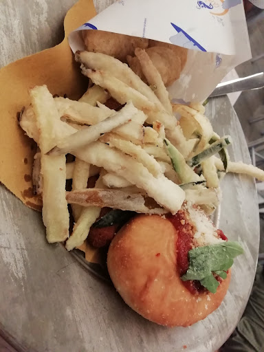 Read moreThis seemed like a fun place for a happy hour, but food was on the plain, junky side. Think fried, soggy platters that were either over or under seasoned. We ordered some starters and they were very heavy and oily. The place is conveniently located and I think catered more towards tourists. Service was very disorganized and we were reminded strongly that gratuity was not included. Two in my party ordered seafood: grilled swordfish and a risotto with shellfish. Swordfish looked rubbery and risotto was too salty to eat. I went with the tagliata and it was decent. It was nice they offered us a trio of limoncello, meloncello and pistachicello(?) at the end on the house, but we were not looking to drink at that point. Again, good place to hang out and have drinks but maybe not for the more...