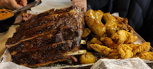 E siamo a 2 cose che non si possono prendere di sabato sera. Arrivano gli antipasti dove il pollo fritto hot and spicy che avevamo chiesto è arrivato normale e le polpettine con il cheddar avevano il cheddar al cuore che era freddo. Anelli di cipolla buoni. Poi arriva il mix di carne dove le uniche cose che mi sono piaciute sono il pulled pork e il brisket, per il resto la pancetta era solo grasso e il pollo alla birra era un polletto piccolo di 20 cm tutto ossa e la carne al centro era cruda. Uno di noi invece ha preso un panino che non aveva né capo né coda, tutti gli ingredienti non legavano ed era difficile da mangiare.