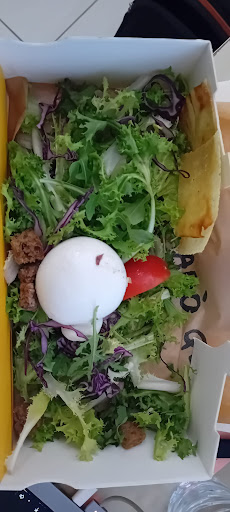 Abbiamo anche riconosciuto il piatto ordinato da una ragazza seduta ad un tavolo vicino al nostro a cui è stato consegnato (ovviamente freddo) dopo circa 40 minuti dall'ordine, visto che 15 di questi (il piatto intendo) li ha passati fermo sul banco consegne.