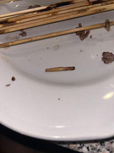 Dopo un’ulteriore attesa arriva la tagliata, ben cotta, ma la nostra richiesta era quella di riceverla con cottura medio/sangue. Nell’ordinazione avevamo specificato che la tagliata dovesse uscire insieme agli arrosticini, poiché una era la mia cena e l’altra quella del mio fidanzato. Spoiler: così non è stato. Dopo mezz’ora sono arrivati solo gli arrosticini classici e da abruzzese, posso dire che la qualità era davvero mediocre.