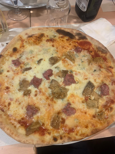 Mi sono recato in questa pizzeria per una cena tra colleghi sabato 22 giugno. Eravamo in 12 e quindi ci hanno fatto accomodare in una saletta affianco. La ragazza che ci ha serviti è stata disponibile e paziente con tutte le pizze e bevande. La pizza era molto buona e leggera. Un collega ha ordinato un hamburger con patatine e un altro collega un piatto di cozze ed un altro una cotoletta con burrata pistacchio e mortadella. Nel menù sono presenti anche antipasti, primi e secondi di terra o di mare, non solo pizza. Ottima la pizza montagnè pomodoro mozzarella zola porcini e salsiccia. Abbiamo speso 20€ per una pizza, una birra e qualche patatina fritta di antipasto da dividere quindi direi ottimo prezzo. Il gestore è stato molto carino ad offrirci l amaro. Peccato siamo di Milano ed è un pò lontano altrimenti saremmo tornati volentieri. Possibilità di parcheggiare davanti al locale cè un parcheggio con...