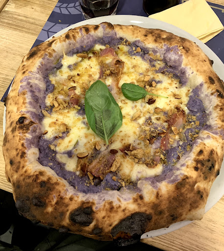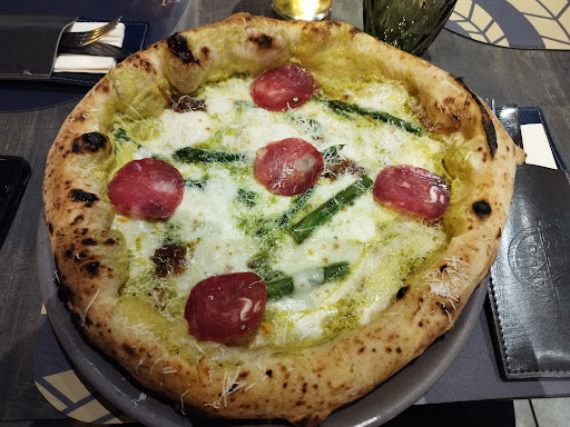 Read morePremetto che ero fortemente indeciso se valutare 4 o 5 stelle per i motivi spiegati in seguito, ma locale assolutamente perfetto, da rivisitare senza ombra di dubbio. Attesa ormai uguale nella maggior parte dei locali di un certo livello, quindi almeno un'oretta di attesa per tavoli più grandi, attesa scorrevole per tavoli più piccoli. Locale nuovo, il 30 Marzo appena 5 mesi che aveva aperto, quando entri fa una bella impressione, colori che non danno fastidio e inoltre si trova in una zona residenziale molto bella e nuova, frittura in apertura molto gustosa, le chips erano squisite! Per quanto riguarda gli ingredienti delle pizze tutti prodotti genuini e freschi come potete ben vedere dalle foto, per l'impasto invece ho notato una leggera differenza tra la pizza "La nera" e "La viola" sulla prima nulla da ridire anzi, PARADISO PER LE PAPILLE GUSTATIVE, invece per la seconda ho notato un impasto un po' pesante (sempre paragonato alla leggerezza della prima), e non ho ben capito se c'era qualcosa di diverso, oppure fossero gli ingredienti che la rendevano più pesante ed é stato questo ciò che ha fatto "perdere" la quinta stella. Per quanto riguarda il personale c'è da dire che sono TUTTI (camerieri e titolari) gentilissimi, educati e disponibili, sono stati rispettosi della "critica" fatta anche di persona per l'impasto e l'hanno accettata senza cercare giustificazioni e mi hanno lasciato alla fine della cena con un paio di amari. Rapporto qualità prezzo davvero conveniente. Complimenti davvero, penso che si trovino ad un livello altissimo per un locale di "soli" 5 mesi di vita, ANDRANNO SEMPRE A MIGLIORARE ne sono sicuro, ci...