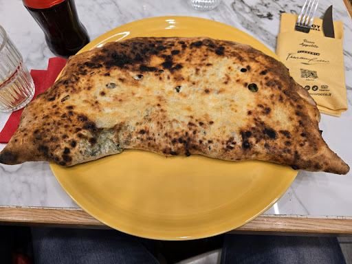Read moreUn Morso di Paradiso Napoletano: La Pizza Ripiena Salsiccia e Friarielli di Francesco Rocco!!! Se siete alla ricerca di un'esperienza culinaria che vi avvolga come un caldo abbraccio e vi trasporti direttamente nel cuore della tradizione napoletana, non cercate oltre: la pizza ripiena al forno con salsiccia e friarielli di Rocco è un vero e proprio capolavoro. La prima impressione è olfattiva: un profumo inebriante che sprigiona dal forno a legna, un mix fragrante di impasto cotto alla perfezione, il sentore rustico della salsiccia e la leggera amarezza, piacevolmente pungente, dei friarielli. Già questo preludio mette l'acquolina in bocca e promette un assaggio indimenticabile. Al taglio, la generosità del ripieno è sorprendente. La salsiccia, sbriciolata e saporita, si mescola armoniosamente con i friarielli, teneri e leggermente saltati, creando un connubio di sapori che si esaltano a vicenda. La grassezza succulenta della salsiccia viene bilanciata dalla nota amarognola e leggermente piccante dei friarielli, un contrasto che rende ogni boccone intrigante e appagante. L'impasto, cotto al punto giusto, presenta una crosta dorata e croccante che racchiude un cuore morbido e alveolato. La sua consistenza è perfetta per sostenere il ricco ripieno senza appesantire. Si percepisce la cura e la maestria nella lavorazione, segno di una vera pizza napoletana artigianale. Ogni morso è un'esplosione di gusto: la sapidità della carne si fonde con la delicatezza amarognola dei friarielli creando un equilibrio che danza sul palato. La cottura al forno esalta i sapori, rendendo la pizza un piatto caldo e confortante, ideale per una serata conviviale o semplicemente per coccolarsi con un autentico pezzo di Napoli.Questa pizza ripiena salsiccia e friarielli non è solo un pasto, ma un'esperienza sensoriale completa. È un omaggio alla semplicità degli ingredienti di qualità e alla sapienza della tradizione culinaria napoletana. Se ne avete l'occasione, non esitate a provarla: il vostro palato vi ringrazierà! Non fare lo sciocco!...