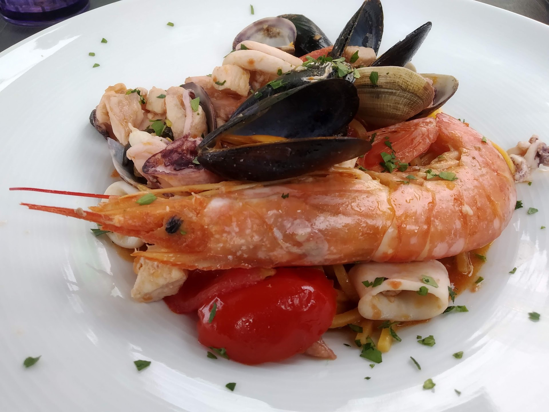 We had a very pleasant Sunday lunch today. The service is very friendly and professional. From the moment you enter the door you feel, this is going to be good. We had a mix of Antipasti and Secondo, all fish/seafood based. It was smart to order only two portions and share them in four. That left some space to try the deserts. Really delicious each dish. House wine and draft beer, nice. The only thing I would recommend is to put sound absorbing panels on walls and ceiling. A common problem here in Bella Italia. With family lunches at long tables with 12-20 people it gets quite loud. In any case, we will be back...