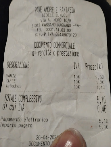 Read moreBuona sera. Entro in questo bar per puro caso, chiedo un biscotto no glutine che sullo scontrino è segnalato alla voce varie, Il caffè ( buono) , la brioche. Peccato che il prezzo del biscotto esposto sul contenitore era di €2, una volta effettuata la consumazione mi recco in cassa per pagare e il biscotto 🍪 era diventato €2,50 ( inflazione a questi livelli in Europa è da non crederci, al 20% per essere precisi ) , ribadisco alla signora barista l'errore e lei si giustifica dicendo che qualcun'altro si è sbagliato a pressificare l'articolo. Al che pago il conto e uscendo dal bar mia figlia mi dice: che disonesta mentre mangiavamo l'ho vista cambiare il prezzo, dovevi insistere. Mia figlia era seduta verso il bancone ed ha visto tutto..... Non è per i famosi 50 cent , è per il gesto del tutto vergognoso. Poi ci lamentiamo dei giovani di oggi ma vedono di quelli esempi nei loro cuottidiani. Fortuna di mia figlia è avere dei genitori che li insegna sanni principi, e il rispetto per della legge....