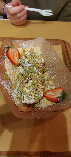 Read moreUna pizzeria peggiore di questa mai vista. Arriviamo e non ci spiegano come ‘funziona’ ci fanno sedere fuori dicendo c’è tutto. Fine. Dopo 15 min non arriva nessuno e il tavolo accanto spiega che è tutto self service. Ma dirlo appena arrivati no? La pizza non era male, te la portano sul bancone e devi andare tu a prenderla, servita in un piatto di carta con sotto il piatto tondo come quelli della mensa. Bicchieri di carta e birra che ti devi prendere tu dentro. 0 scelta rispetto a quello scritto sul menu! L’impasto era napoletano però era un po’ bruciata e i bordi erano da una parte normale da una parte piatti. Mah. Ordino portando io dentro il menu con scritto cosa volevo e ho ordinato direttamente il dolce. Il dolce? Una cheesecacke al pistacchio (?) che sembrava una crostata durissima con dentro la crema del cannolo e qualche spolverata di pistacchi. Ti rompi i denti per mangiarla! E sono entrata io per chiedere ma arriva il dolce? La parte peggiore è stata che alle 21:10 di sabato sera avevano finito l’impasto delle pizze! Con 2 tavoli prenotati pieni di gente! Loro scioccati. Una pizzeria che ti offre solo pizza, bruschette. Ma si può? Che vergogna! Prezzi esagerati per quello che offrono. Non paghi il servizio che ovviamente non c’è. Una pizza (senza mozzarella tra l’altro perché c’erano 10 gr forse di stracciatella) 11 euro. Una birra menabrea 6 euro! Assurdo. Cari per il tipo di ‘locale’ bruttino proprio. Mai più. Altre pizzerie possono permettersi sti prezzi loro no. Volevo andarmene ma dovevamo fare veloce perchè l’indomani si lavorava presto! Avranno cambiato gestione perché non...