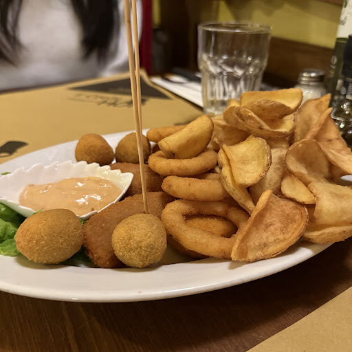 Read moreIl locale non è molto grande, ma i tavoli sono sistemati in modo corretto, così risulta ben ottimizzato lo spazio, in più è molto pulito. I camerieri sono molto gentili e anche rapidi nella consegna. Io, insieme ad un amico, ho ordinato il panino "man vs food", una loro specialità, con 1kg di carne, servito con abbondanti patatine fritte, davvero molto buono con ingredienti freschi. Se però non si vuole esagerare, c'è una lista molto variegata tra cui scegliere e lo stesso vale per le loro ottime birre artigianali. Prima che venga servita l' ordinazione, ti vengono serviti degli stuzzichini e non il pane comune dei ristoranti. Il locale è anche molto brandizzato, infatti con i panini, al posto della solita bandierina decorativa sullo stecchino, posizionano un adesivo del locale che puoi portarti a casa come ricordo. Per concludere bisogna dire che il prezzo è in linea con la freschezza degli alimenti. Consiglio...