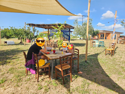 Read moreSi può dare più di 5 stelle? Questo posto, trovato per caso leggendo le recensioni su Google Maps, si è rivelato anche superiore alle nostre già buone aspettative! È un' azienda agricola gestita da un ex ristoratore di San Vincenzo con una lunga esperienza.. e si vede! Personale giovane e molto gentile e attento, cibo molto originale (ma non mancano i classici). Il tutto è molto gustoso e in un ambiente originale: tanti tavoli tutti diversi tra loro (c'è anche una botte, dei divanetti, ecc.) apparecchiati molto distanti tra loro, tanto da permettere tutta la privacy nelle conversazioni, all' aperto in un campo, con tanti punti coperti da tettoie o teli e illuminati da file di lampadine. Dato che sono un' azienda agricola non possono effettuare servizio al tavolo perciò una volta scelto dal ricco menù esposto, si comunica l' ordine alla cassa. Lì vi viene consegnato un dispositivo e si sceglie il tavolo a cui sedersi. Non appena i piatti ordinati sono pronti, il dispositivo inizia a suonare e il cliente può alzarsi e andare a ritirare il piatto vicino alla cucina, dove non manca l' attenzione al cliente: sorrisi, piatti extra dati per poter condividere la pietanza col partner, posate extra lì a disposizione. I camerieri non mancano di sorrisi, interazione e di chiedere costantemente se tutto va bene. Al termine del pranzo/cena i camerieri sparecchiano.. non devono farlo i clienti. Noi abbiamo preso un tagliere toscano (molto ricco con 2 crostoni uno ai fegatini e un altro di diverso tipo), finocchiona, crudo, pecorino, olive nere e una terrina con la pappa al pomodoro; crostini a filetti di acciughe, burro e salsa di pomodoro; uovo cotto a 64° su hummus di melanzane con maionese di pomodoro; tagliatelle ai moscardini; acqua, un bicchiere di rosso.. e abbiamo pagato 59€. In sottofondo la giusta musica.. sopra di noi le stelle...